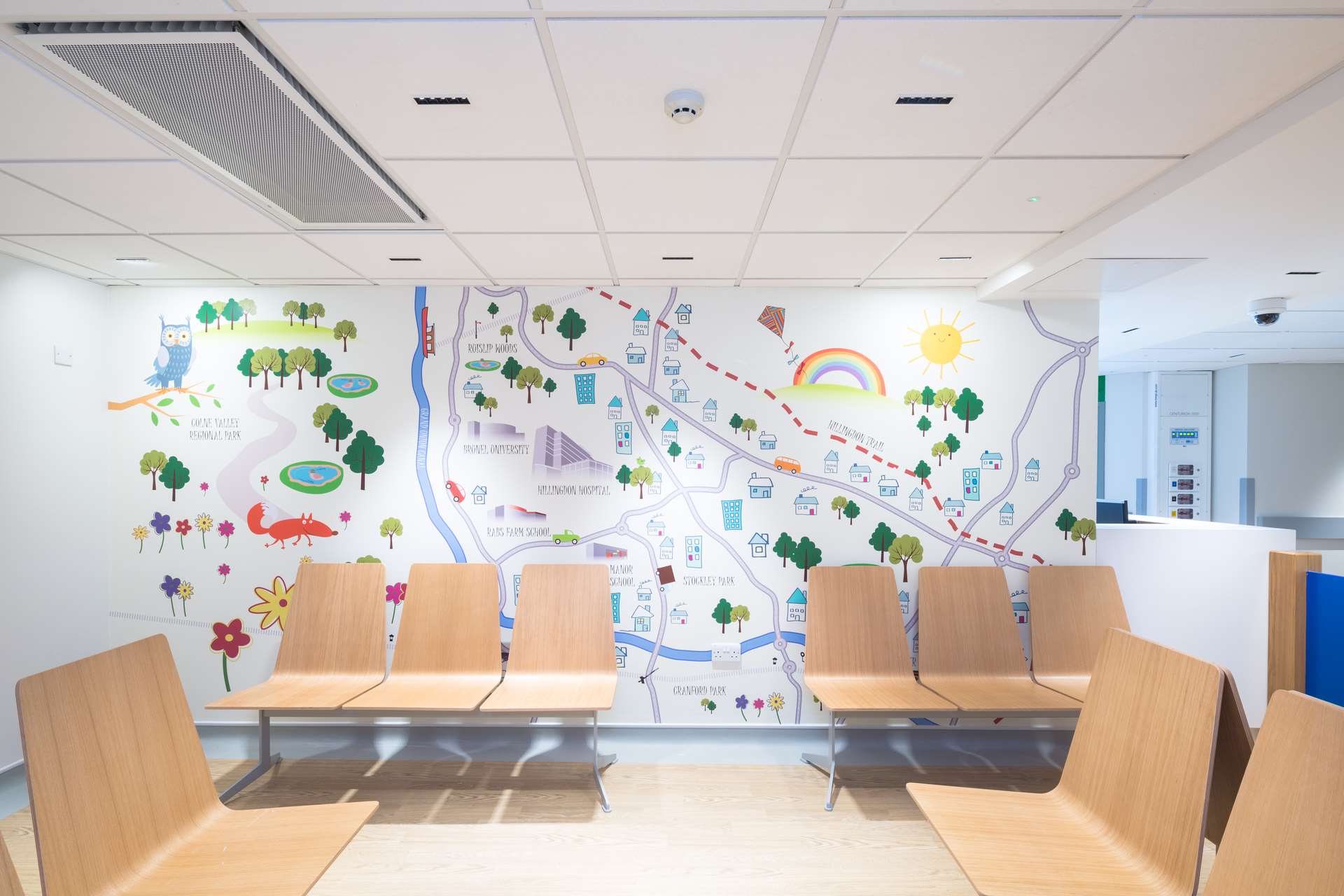 Custom print option utilising UV cured inks onto an Altro Whiterock sheet from a design or photographic image. Great for feature walls, logos and to aid with signage. Inspired, unique, durable solution
