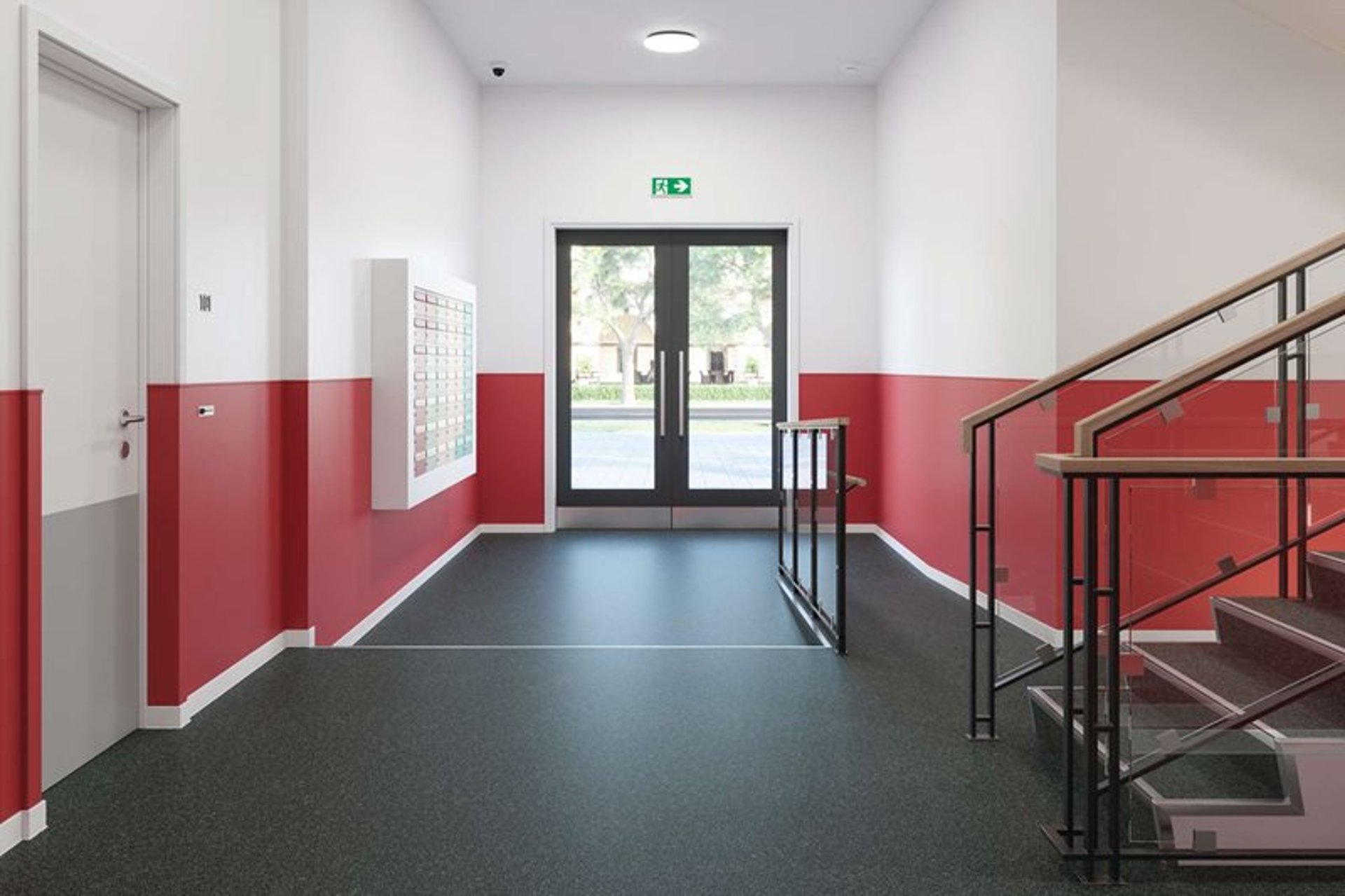 Ready-made piece for added protection along the wall’s vulnerable corner. Co-ordinates with Altro Fortis Titanium.