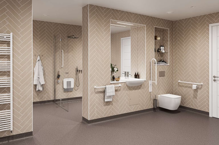 Altro Walls ShowerKit is suitable for all residential bathroom and wet room installations. Available in a range of colours and designs, from classic white to tile-effect, helping to create a neutral and clean appearance or a contemporary ambience. Reducing installation time, and removing the need for specialised installation, Altro Walls ShowerKit can be installed over existing ceramic tiles and provides ease of maintenance for residents.