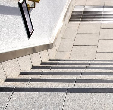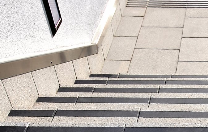 Stairtile is a rubber composite material designed to provide a hard-wearing, slip-resistant finish for stairs and floors. It can be installed in a wide range of applications such as shopping centres, car parks and other high usage circulation areas. It can be used as a complete stair covering or as an insert set into terrazzo, wood and concrete. Stairtile is suitable for use in both internal and external applications and is available in a choice of 4 colours.