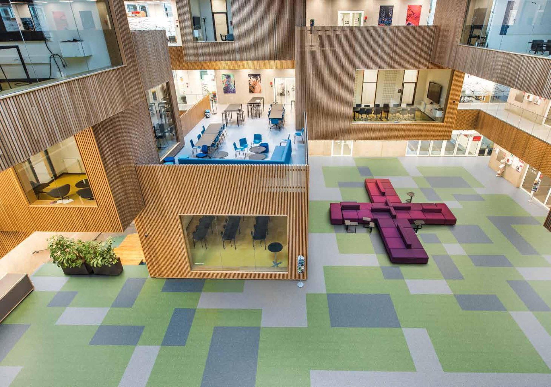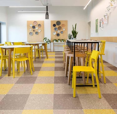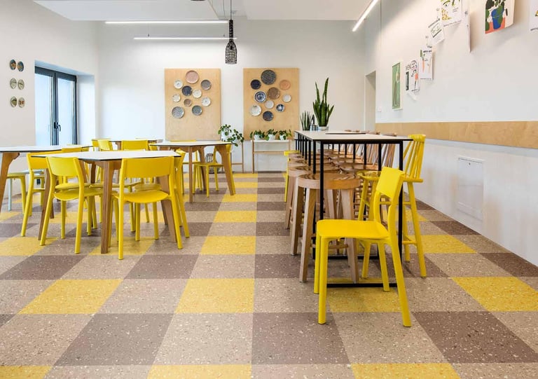 The versatile Mosaic range includes a wide variety of classic and colorful designs. The Quartz Mosaic color palette is built based on the impact of color to create an environment of learning. We have created color moods that enhance creativity and stimulate a cool and relaxing environment. While the striped, tone-on-tone tinted granulates soften the visual appearance, they also hide dirt efficiently, making Mosaic suitable even for the most demanding areas and situations.