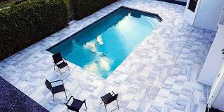 Anti-Slip Porcelain Tiles: Highly durable, non-porous, and available in various styles, including metallic, slate, or stone effects. They are ideal for resisting pool chemicals.