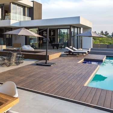 Composite Decking: Provides the warmth of wood without the maintenance, splinter risk, or rot associated with real wood in high-moisture areas.