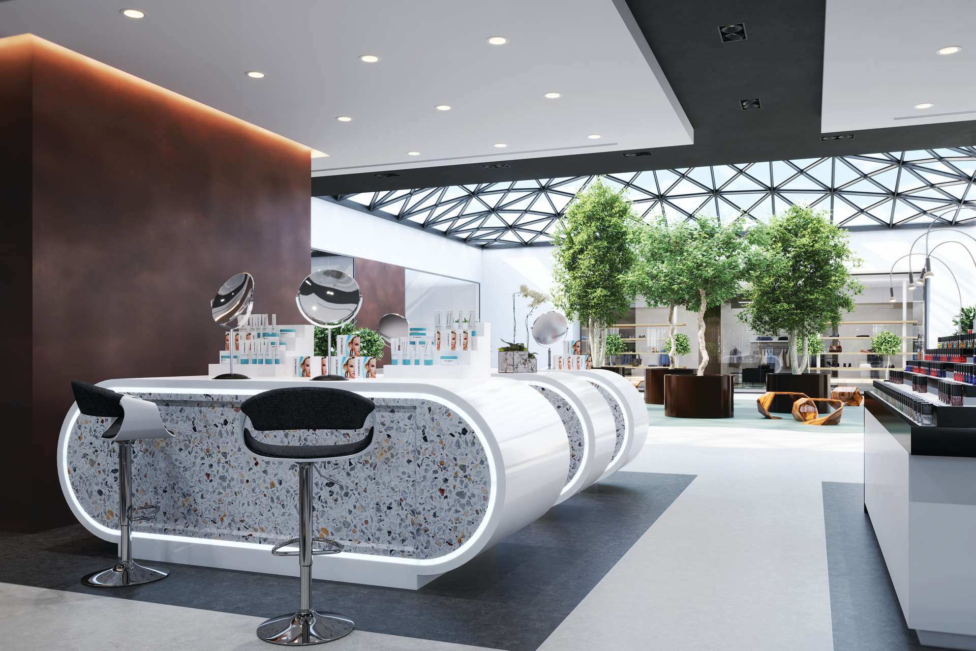 Here we showcase ideas for amazing greeting areas with imaginative flooring ideas to matching walls and reception furniture, with logos and motos handcrafted within the materials for eye catching visuals for customers as they first arrive