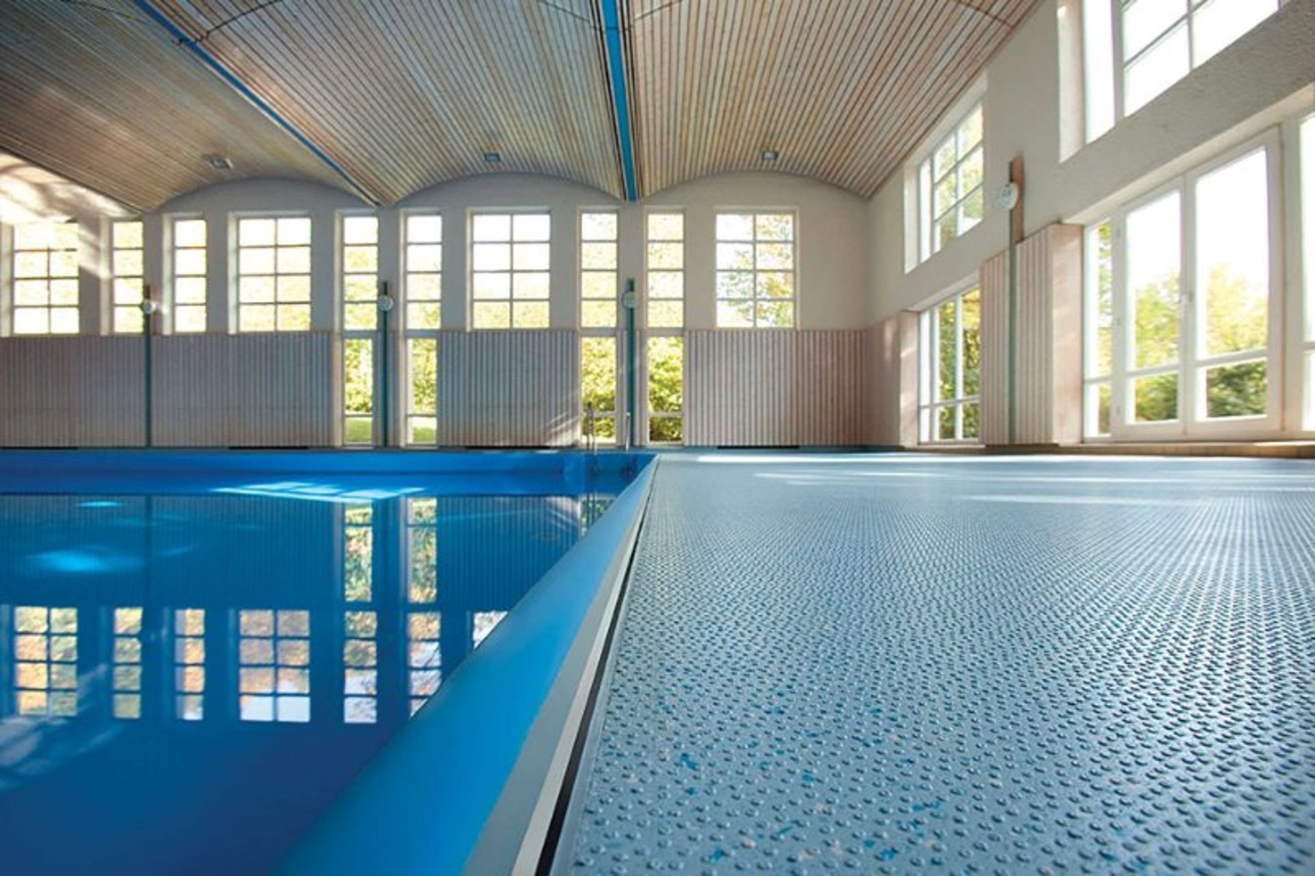 The rating ranges from R9 (lowest slip resistance) to R13 (highest slip resistance), with safety flooring typically rated R10 or higher.