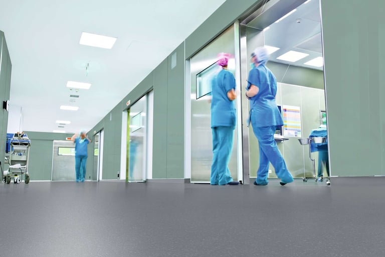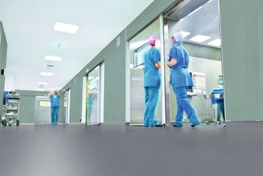Compact floor for foot traffic. Subtle, adaptable design that suits large spaces such as hospital / care home corridors and patient rooms, retail, education circulation areas and corridors.